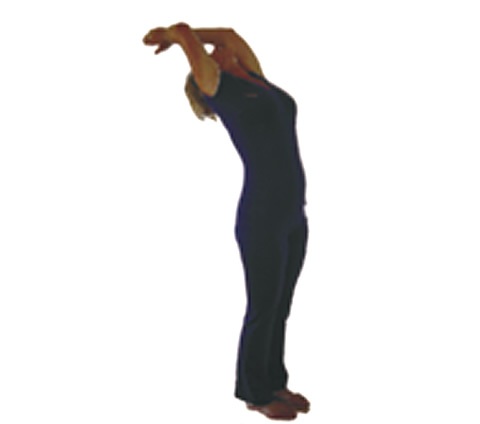 2. V nádechu paže napínáme, zakláníme se, obličej míří vzhůru.