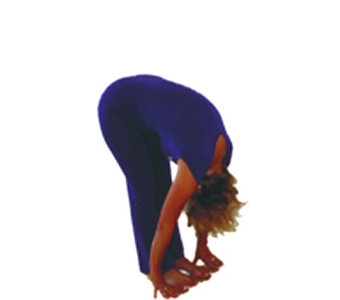 3. Ve výdechu se předkláníme. Tělo se skloní vlastní vahou, nesnažíme se hmitáním dosáhnout rukama země.